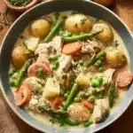 Une délicieuse blanquette de poulet et légumes de printemps, crémeuse et réconfortante, parfaite pour les repas en famille.