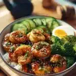 Ce bol de crevettes est tout ce dont vous avez besoin après une longue journée. Il est rapide à préparer, succulent et plein de saveurs. La douceur du miel équilibre parfaitement le goût umami de la sauce soja, tandis que l’ail apporte un parfum irrésistible. C’est une recette parfaite pour les soirs où vous êtes pressé(e), mais que vous souhaitez quand même offrir à votre famille un plat qui sort de l’ordinaire. Ajoutez-y des légumes croquants, et vous aurez un repas complet, coloré et délicieux.