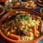 Un délicieux couscous royal marocain, réconfortant et parfait pour les repas en famille, rempli de saveurs orientales et d’ingrédients colorés.