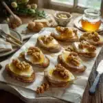 Crostinis dorés au brie, miel et noix : un goût de réconfort