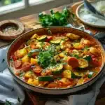 C’est l’un de ces soirs où l’air est doux et que l’on souhaite simplement retrouver le goût de la maison. Dans ma cuisine, il y a une odeur chaleureuse qui s’échappe de la casserole, chaque épice ajoutant une note à l’instant présent. Le mélange de poulet tendre et de courgettes, réuni par la douceur du lait de coco, évoque des souvenirs de dîners partagés, de rires et de conversations animées autour de la table familiale. Ce curry crémeux est bien plus qu’un plat, c’est une étreinte chaleureuse à chaque cuillerée.