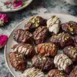 Une douce folie de dattes Medjool farcies avec un mélange de noix de pécan, miel, et chocolat noir, parfaites pour les goûters ou les desserts.