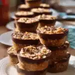 Versez une généreuse cuillère de chocolat fondu sur chaque moule, en veillant à bien recouvrir le mélange d’avoine et de beurre de cacahuètes. Puis, placez le tout au réfrigérateur pendant au moins deux heures. Cela permet aux saveurs de se mélanger et à la texture de se raffermir.