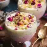 Ce qui rend cette Falooda Rasmalai à la rose si spéciale, c’est sa capacité à combiner des textures variées : la douceur des rasgullas, la crème veloutée du lait, et le croquant des amandes et pistaches. De plus, elle est incroyablement simple à préparer, parfaite pour une fête ou un simple dessert après un repas. Que vous le serviez lors d’une occasion spéciale ou lors d’un rassemblement familial, ce dessert va élever l’ambiance à chaque bouchée.