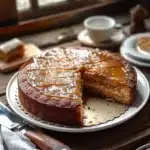 Un gâteau moelleux aux pommes, nappé de caramel crémeux, parfait pour partager des moments chaleureux.