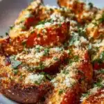 Des patates douces rôties délicieuses à l’ail et au parmesan, offrant une texture croustillante et une saveur réconfortante.