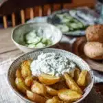 Pommes de Terre Dorées avec Dip de Concombre : Une Recette Réconfortante et Savoureuse