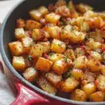 Cette recette de pommes de terre est tout simplement irrésistible. Imaginez des morceaux de pommes de terre dorées, croustillants à l’extérieur et tendres à l’intérieur, sautés avec de l’ail parfumé et un soupçon de sirop d’érable pour un équilibre parfait entre le salé et le sucré. Imaginez un plat qui n’est pas seulement facile à préparer, mais qui peut aussi être ajusté selon les ingrédients que vous avez sous la main. Que vous prépariez un brunch dominical ou un petit déjeuner rapide en semaine, cette recette est là pour apporter chaleur et réconfort dans votre cuisine.