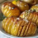 Ces pommes de terre Hasselback ne sont pas qu’un plat d’accompagnement ordinaire. Leur style unique et leur goût irrésistible les rendent parfaites pour toute occasion, que ce soit un dîner en famille, un repas entre amis ou même une soirée tranquille à la maison. Chaque bouchée offre une harmonie entre le croustillant et le moelleux, un contraste parfait qui, je vous le promets, séduira tout le monde. De plus, elles sont incroyablement polyvalentes — vous pouvez les assaisonner avec vos herbes préférées, ajouter du fromage, ou même y glisser des morceaux de légumes pour une touche encore plus gourmande.