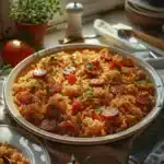 C’est un de ces soirs où l’odeur des plats mijotés flotte dans la maison, où la chaleur du four et l’éclat de mes casseroles sur le feu créent une ambiance douce et enveloppante. Imaginez-vous en train de vous installer autour de la table, avec votre famille, partageant des rires et des histoires, pendant que le riz au poulet et à la tomate, avec sa texture dorée et sa sauce parfumée, apparaît comme le héros du dîner. Ce plat, qui mélange simplicité et réconfort, ne manquera pas d’apporter une touche chaleureuse à vos soirées.