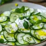 Réaliser une salade de concombre au yaourt, c’est se laisser porter par la simplicité et la beauté des ingrédients frais. En quelques gestes, vous avez créé un plat qui apportera de la joie et du réconfort lors de vos repas. Alors, n’attendez plus ! Glissez-vous dans votre cuisine, savourez chaque étape et régalez-vous avec cette recette rafraîchissante, parfaite pour les beaux jours comme pour les soirées en famille. Bon appétit !