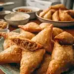 Des sambusas croustillants remplis de viande de boeuf assaisonnée et d’herbes fraîches, parfaits pour un moment de convivialité.