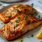 Un délice facile et réconfortant de saumon croustillant cuit à la friteuse à air, parfait pour les soirs de semaine ou les dîners spéciaux.