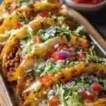 Des tacos croustillants farcis de viande savoureuse et garnis de fromage fondant, parfaits pour des repas en famille.