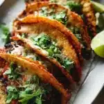 Si vous avez des restes, ces tacos se conservent bien au réfrigérateur dans un contenant hermétique pendant 2-3 jours. Ils peuvent également être congelés, mais je vous recommande de les décongeler avant de les réchauffer au four pour un regain de croustillant.